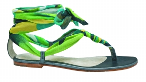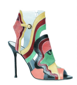 大热的罗马式鞋款在今春仍旧在延续,变得越发性感。与粗犷的经典款的罗马鞋相比,在其中加入了高跟、鱼嘴、镂空编织等元素后的鞋子有一种刚柔并济的独特气质,前卫张扬。今春的罗马鞋还具有比以往多的装饰,用珠扣、绑绳等配合高度不一的鞋跟,既有力量美又不失女性的柔美。