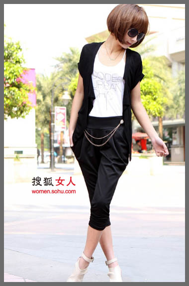 小编点评:这款裤子设计风格简约大方,款式别致,是上班族在这个夏天里的首选佳品。有一股流行的欧美哈伦风范,夸张的哈伦感觉在腰胯部分裁剪都体现出来了,女人腰部的线条美,让精巧的MM们穿着是落落大方。
