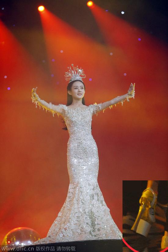10月10日晚8点10分,第十届中国金鹰电视艺术节暨第二十七届中国电视金鹰奖开幕式在长沙正式启幕。作为每届金鹰节的标签之一,接棒成为新一任金鹰女神的赵丽颖一席金色鱼尾长裙在光束中拉开晚会序幕,虽然站在舞台上华丽美艳,然而为了拥有“女神范儿”,身材原本较小的她不得不脚蹬超过25厘米的高跟鞋上场,每行一步都需要工作人员搀扶。
