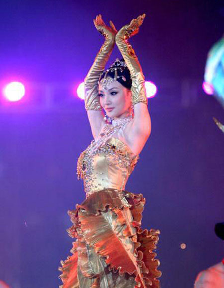 2008年金鹰节开幕式上,李小璐的造型妖艳中带清纯,可爱中带坚毅,在一群舞者的簇拥下缓缓出场。从舞姿和妆容上看,颇像个新疆妹子,从露额头的中分发型和浓重的眼妆上看,这届女神走的是异域风。