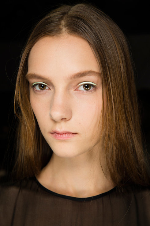 摩登简洁的Dior妆容,眼贴以绿、粉、粉橘成为妆容的重点,也充满了春天的色彩,没有浓重的黑眼线和睫毛,非常年轻靓丽,眉型精致自然。