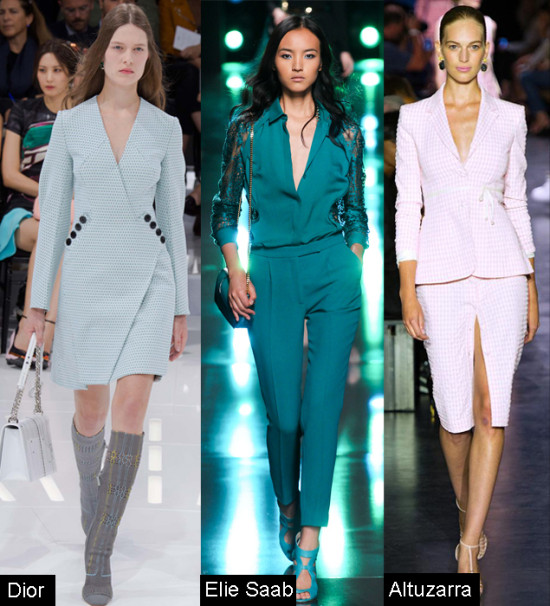 Altuzarra本季也带来了简约的职场装,全身淡粉色干净又不失女人味,贴身剪裁。ElieSaab这一季中也带来了不一样的职业装,纯色和连身设计展现职场女性的干练利落,衣袖和腰部的透视、蕾丝元素又微妙的展现女人的妩媚。