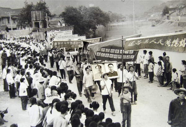 图为1976年粉碎“四人帮”后,遂昌举行大游行,游行地点在原印刷厂、豆腐厂一带,现凯恩路。照片由叶祖青提供。(如有类似照片者,可与13857044873联系)