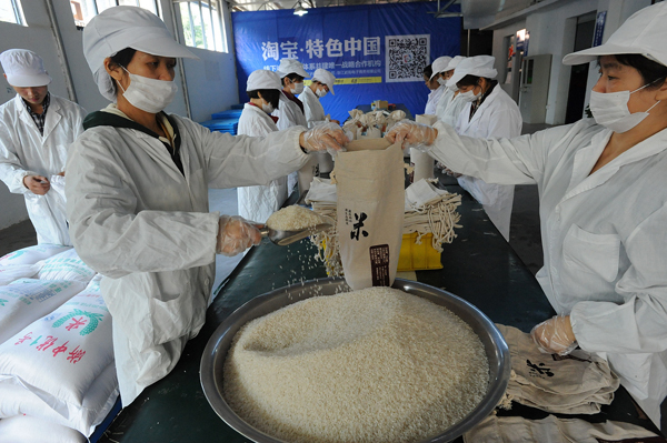 今日,在县网店协会的仓储中心,工作人员正忙着包装新米,并发出第一批订单。今年我县的高山大米通过电子商务预售,还未上市就大受追捧。