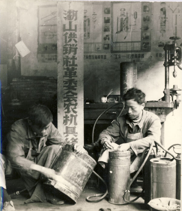 图为1978年湖山农机修理站工作人员正在认真修理农具。(如有类似照片者,可与13857044873联系)