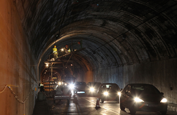 近日,县公路局在巡查中发现大柘镇西岭隧道有漏水现象后,及时组织施工人员对隧道漏水情况进行补漏处理。施工期间,隧道将实行单线交通管制通行。