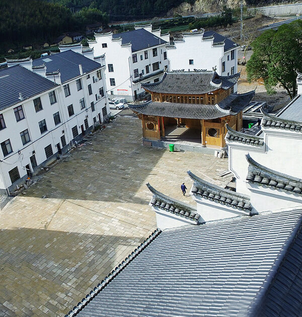 龙洋乡九龙口村新建小区统一采用徽派建筑风格,白墙黛瓦与周围的自然景色完美融合。目前,已完成小区内的亭台楼榭建设,小桥流水等景观建设也接近尾声。届时,村里将依托生态优势开发成独具特色的农家乐产业集群,带动村民增收致富。图为小区一角。