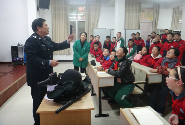 近日,县公安部门民警走进校园开展法制宣传,通过实例向县育才中学120余名中学生讲解了青少年犯罪原因及其预防对策,有效提高了广大学生的法制观念和守法意识。