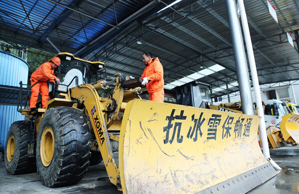 针对即将到来的寒潮及雨雪冰冻灾害天气,县公路部门做足准备,铲车、除雪车、工程抢险车等各种抢险设备和工具都已准备就绪,积极应对雨雪冰冻恶劣天气影响,全力保障公路畅通。图为公路养护工人对大型设备进行全面保养检修。