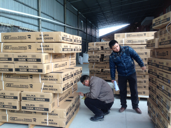 元立集团下属的浙江白马休闲用品有限公司,利用元立集团自己生产的圆钢、线材、带钢和铁管、焊丝、标准件等产品进行延伸加工,生产各种休闲用品。第一批1000多件秋千即将发往欧洲。图为工人为即将发出的货贴标签。