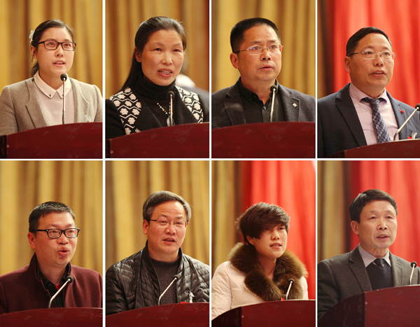 今日下午,县政协八届五次会议第一次全体会议在县影剧院隆重召开。图为委员们在大会上发言。