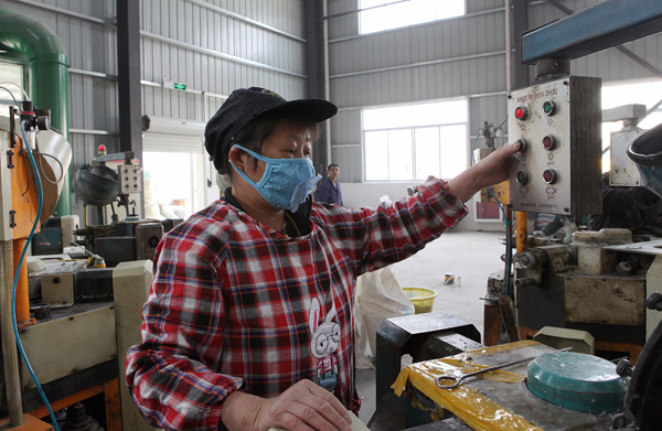 在位于遂昌—诸暨山海协作产业园龙板山区块的昌源服饰有限公司生产车间内,工人在加工纽扣。目前,总投资达1.4亿元的嘉隆服饰有限公司和昌源服饰有限公司进入试生产,据悉,龙板山区块现已有13家企业入驻,3家企业已开始生产。
