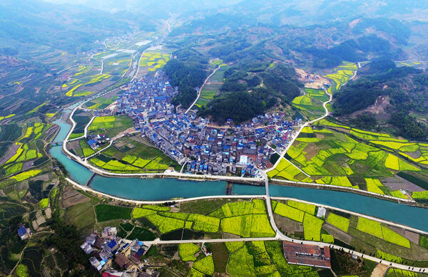 航拍下云峰街道马头村清澈的河流、金色的田园将村庄环抱,呈现出一派美丽的田园风光。近年来,该村通过“五水共治”、“三改一拆”等工作的开展,水清了,岸绿了,村庄变得更加美丽。