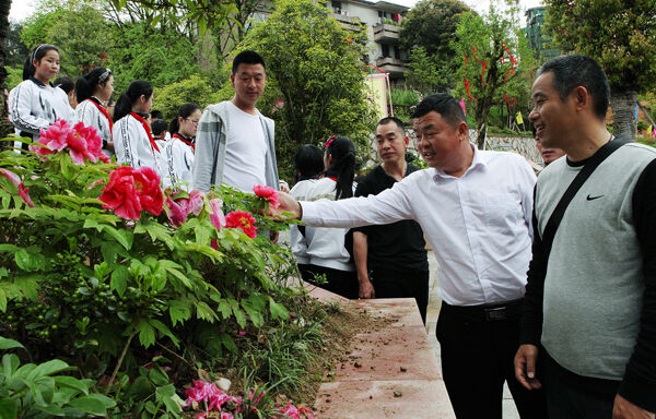 去年10月份,县市政园林管理处引进2000余株、多个品种的牡丹在汤公园种植,现在正值牡丹开花之际,盛开的牡丹为汤公园增色不少,但有些游客在园内赏花的同时也随手采摘,甚至把牡丹拔回家种植,在此我们也呼吁:花草无语,请手下留情。图为市政园林工作人员和牡丹专家一起查看牡丹的生长情况。
