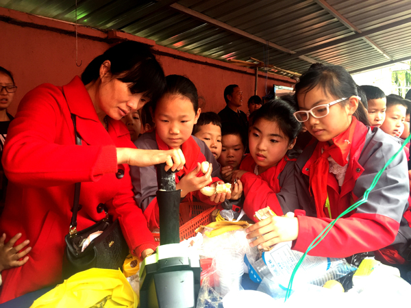 近日,后江民族小学举办首届校园民俗文化节,开展了具有畲族色彩的文艺表演、尝美食、知识竞赛等活动,旨在丰富校园文化生活,进一步传承和弘扬民族文化。图为学生和家长一起制作美食。