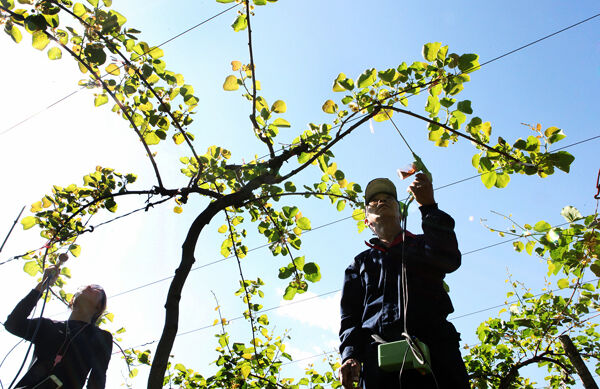 近日,在北界镇淤弓村猕猴桃基地内,果农们在给猕猴桃进行授粉。据了解,以往授粉用毛笔蘸着花粉,一朵一朵进行人工授粉,而今年采用了电动授粉枪,和传统手工授粉相比,电动授粉枪极大地避免了花粉的浪费,而且相比于单花蘸粉节省劳动力5倍以上。