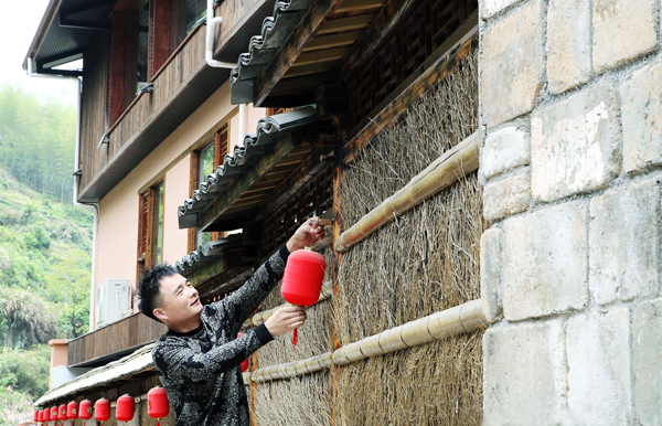 焦滩乡蔡口村“闲思居”民宿,工人挂上小灯笼等饰品进行装点。该民宿现已投入资金500多万元,目前室内外装修已基本完成,露天游泳池、立体车库也在建设中,预计在5月底开张试营业。近年来,焦滩乡立足于生态发展理念,积极引进民间资本建设精品民宿,为焦滩休闲旅游发展注入新鲜的血液。