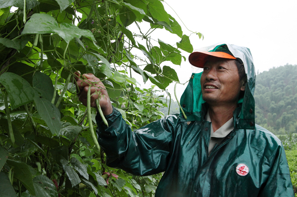 今日,三仁畲族乡好川村村民冒雨在采摘四季豆。三仁畲族乡积极推进农产品结构多元化发展,今年全乡共种植四季豆面积达800多亩,产量预计达到1000吨,产值达350多万元。四季豆成了该乡继笋竹、制种、茶叶后的又一主导产业。