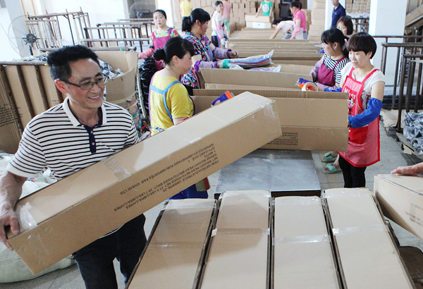 车间里,工人在将产品进行包装准备外运。浙江泰运通家居礼品有限公司是一家有8年历史的户外家居生产企业,长期以来,所生产的吊床、沙滩椅等产品一直销往美国、加拿大等欧美市场,年产值达2000多万元。目前,随着国内市场对户外家居产品的需求量逐渐加大,该公司积极拓宽销售思路,开发出适合国内市场的产品,努力在国内市场打开销售新渠道。