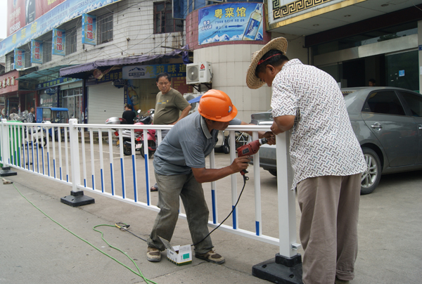 今日上午,在县汽车站出口处,数名工人正拿着电钻安装道路隔离护栏。据了解,为营造良好的交通氛围,助力“创国卫”,县交警大队安排工人在车流量和人流量较大的街道上安装道路隔离护栏,以规范行人和车辆的通行秩序,提升交通安全系数。