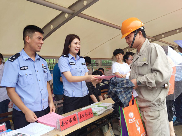 日前,县交警大队民警走进厂区开展“安全生产月”宣传活动,发放各类交通安全手册、行车安全提醒等宣传资料,同时设立展台接受群众咨询。