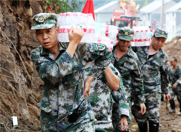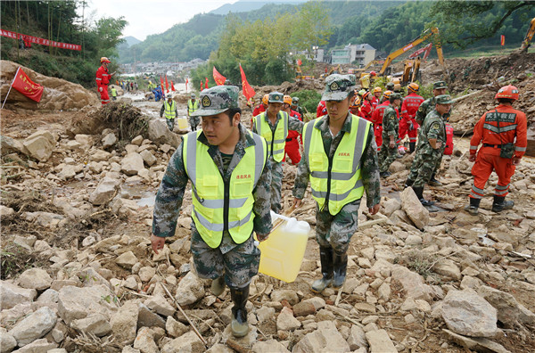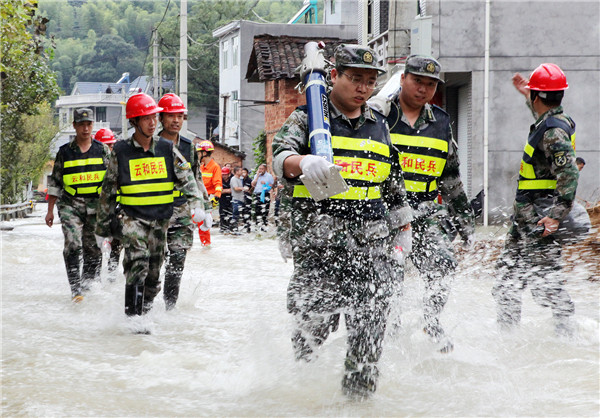 “协助搜救、搬运物资、维持秩序、整治场地......哪里有需要,哪里就有民兵的身影。”县人武部政工科科长秦成业说,灾情发生后,丽水军分区第一时间关注灾情,冲在抢险救灾第一线,并统一指挥调度各(市、区)民兵队伍,每天轮流派出一个县(市、区)100名民兵支援灾区,同时,遂昌人武部也每天从乡镇抽调100名民兵,全力支援抢险救灾。