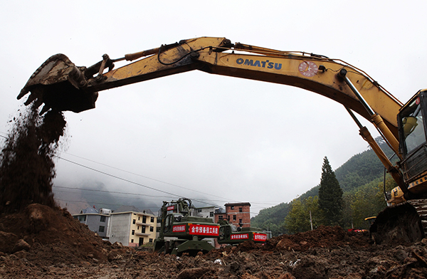 军地共建新家园。苏村灾民安置小区施工现场,金华军分区和县城发公司大型机械加班加点在开挖基础。目前,地基开挖、板房基础钢筋绑扎和基础浇筑同步施工。