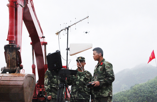 为确保前线救援的各部队官兵安全开展救援工作,武警交通部队运用六旋翼无人机,专业测绘侦查地形,并全时监测滑坡区和堰塞湖状况。
