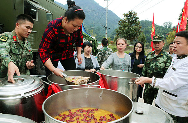 今日,凤凰山庄的员工们来到北界镇苏村,将100多只用药膳炖制成的土鸡汤送到苏村灾区救援官兵手中,让在一线救灾的人民子弟兵能喝上一口鲜美的土鸡汤,也表达了他们的感激之情。