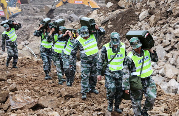 遂昌民兵在运送油料。连日来,在苏村救援现场,来自丽水9县(市、区)的民兵们轮流换岗,走了一批又接上一批,日夜坚守在救灾一线,为救灾后勤保障而默默奉献着。