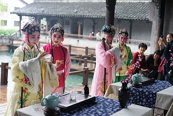 日前,2016第四届乌镇戏剧节举行。由县文化馆编排演出的昆曲茶艺表演亮相其中。演员们身着传统戏服,进行茶艺表演,吸引了来往宾客驻足观看。