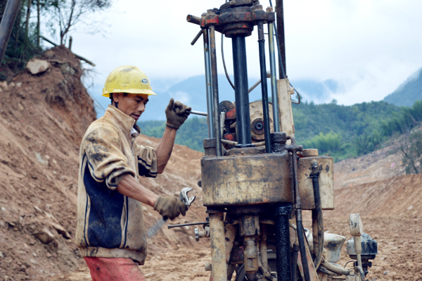 在苏村山体滑坡发生地,昔日堰塞湖已“变身”清澈溪流,为绕开危险地段,滑坡点上游将新建一座桥梁。图为10月23日工人正在开展桥墩选址工作。
