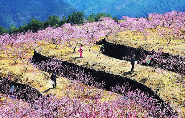 日前,位于焦滩乡大路沿村的丽凤家庭农场里,200多亩桃花竞相开放,将山坡染成了粉红色,很是壮观。据悉,这片桃林分别种植了早凤王、新川中岛、燕红等6个品种的桃树,端午前后桃子将陆续成熟进入采摘期。