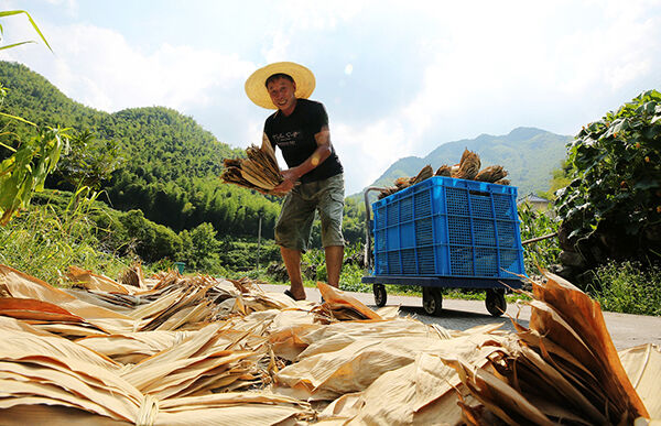 近年来,我县山区生长的箬叶一直深受杭嘉湖以及南京等地市场的欢迎。如今,随着我县长粽、青糕、发糕等特产在网上的热销,原本一直销往外地的箬叶在本地市场也供不应求,采摘、加工箬叶也成了村民们增收的渠道。图为高坪乡湖连村村民在晒箬叶。