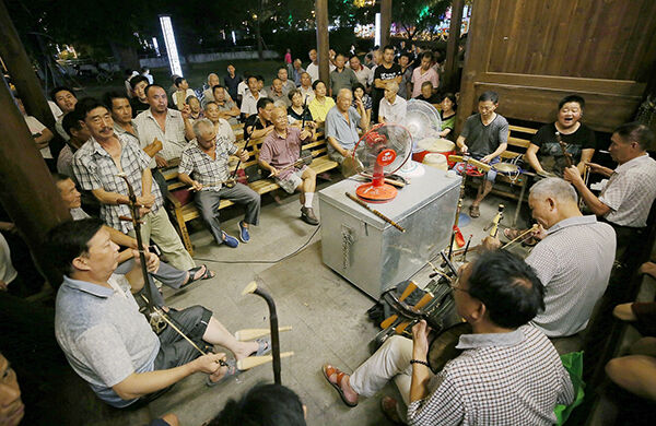 当夜幕降临、华灯初上时,在县城溪边路文化长廊,在平昌广场古戏台旁,总会聚集着一群群热爱戏曲的市民,吹拉弹唱,自娱自乐,成为一道别致的文化景观。