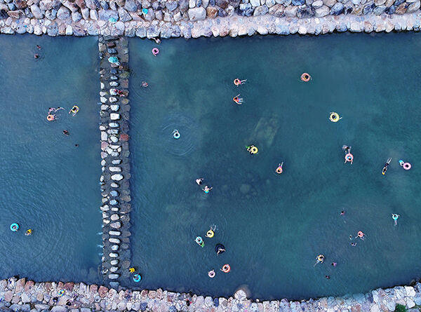 炎炎夏日,云峰街道同心村生态河道成了市民避暑戏水的胜地。据了解,自实施清水源河道生态水电示范项目后,同心村将水生态、水景观、水安全融为一体,打造了一幅“人在水中游,水在景中流”的美丽乡村风景画。图为市民在清澈的河道里戏水。