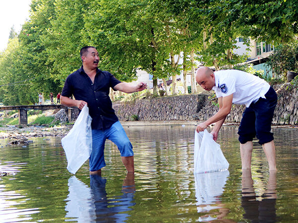 今日,县水利局水政渔政执法大队工作人员将一批由非法电鱼者购置的鱼苗运送至大柘镇黄垵村,由执法人员和该村村干部一同将鱼苗放流至该村溪流中。