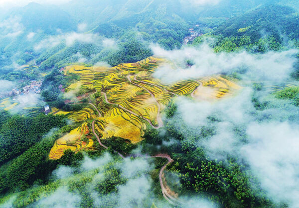 金秋十月,稻浪飘香。10月7日清晨,高坪乡茶树坪村300多亩金黄的高山稻谷在晨雾里若隐若现,和青山、民房构成了一幅美丽的山居图。近年来,茶树坪村全力打造的“云上农耕”品牌大受追捧,吸睛无数,所产的稻谷也成了“网红”。
