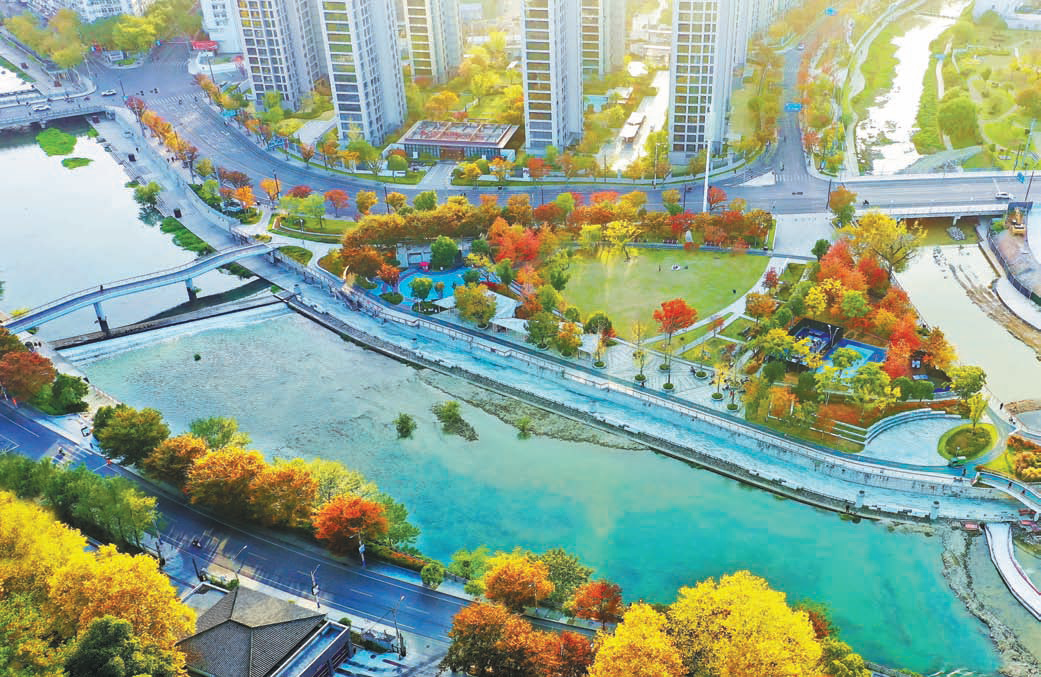 日前,在县城古院公园、环城路、三溪口、吴乐畈等地,处处可见一场冬日的色彩盛宴。金黄银杏缀满枝头,深红枫叶燃透林间,暖阳下的梧桐叶黄如金,五彩斑斓的色彩像大自然打翻了调色盘。成了冬日里流动的五彩油画,为城市增添了一份诗意。图为冬日里的三溪口景观。