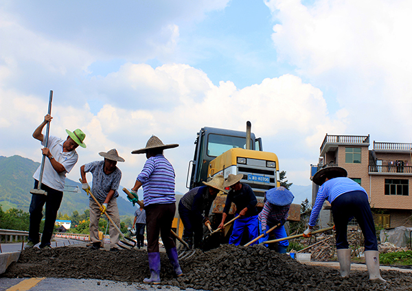 我县龙丽线大中修工程项目正如火如荼施工中。目前洋条岭路段约3.5公里已全部完成大中修。同时,龙丽线10余个点位也进入路面保养期,全部工程有望于国庆前全部完工。图为施工人员正在浇筑水泥路面。