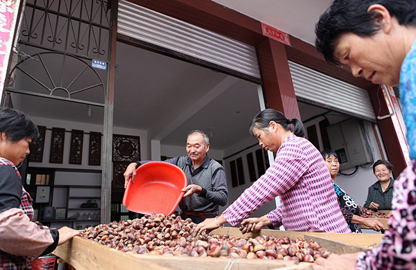 目前正值板栗收购期。连日来,在大柘镇柘溪下村板栗收购点,每天有七八名工人忙着分拣收购来的板栗。该收购点每天收购板栗约1万公斤,主要来自湖山、金竹、大柘、石练等板栗主产区。据悉,我县有板栗5.5万亩,今年预计产量5000吨,产值达3千万左右。