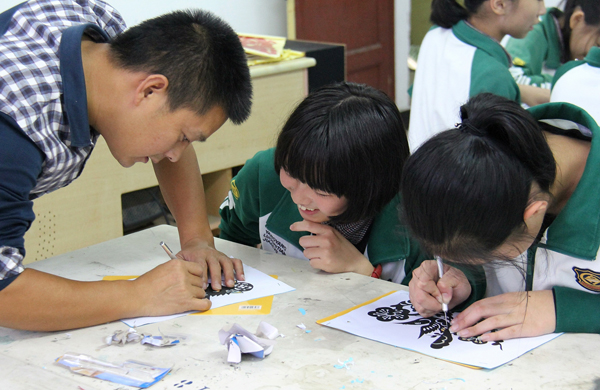 遂昌育才中学积极深化义务教育课程改革,以学生社团活动为抓手,逐步构建具有时代性、基础性、选择性的课程体系,积极打造育才特色课程。目前,学校已开设剪纸、刺绣、棋类等20门特色课程,深受学生们喜爱。图为美术老师正在指导学生进行刻纸。