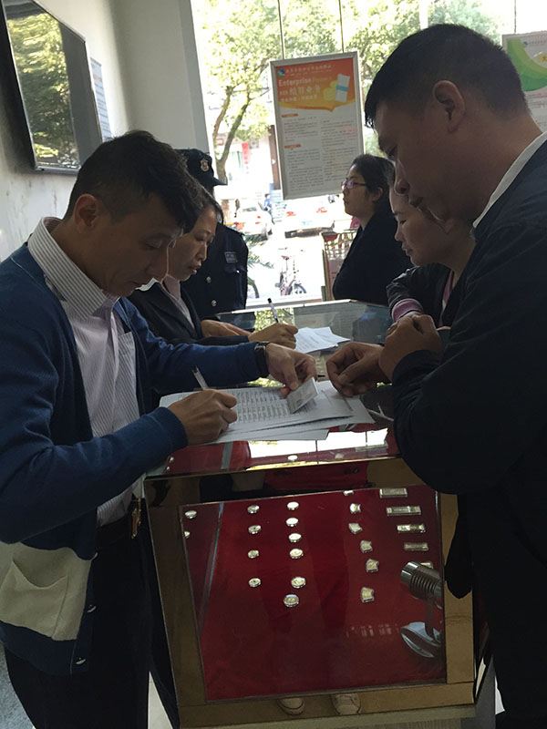 市民正在银行排队登记兑换纪念币