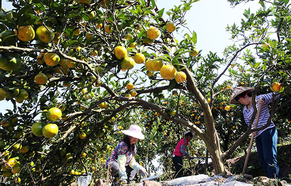 今日,湖山乡龙珠岗柑桔场里,工人在忙着铺设薄膜,以增加阳光的反射度。该柑桔场为丽水市优质高效农产品示范基地,据悉,目前正在积极备战11月份浙江农博会期间举行的农业吉尼斯柑橘擂台赛。