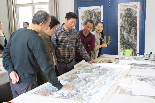 为更好弘扬和传承中华传统文化,进一步加强对传统文化的学习和交流,我县部分美术教师成立了国画创作群体。自成立以来,成员经常一起创作学习。图为美术教师们在切磋学习。