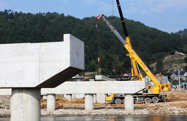 今日,园丁路西段桥梁工程开始架设。该工程为园丁路西段道路工程的接线工程,桥梁全长81米,横跨南溪,北接环城西路,南接园丁路西段,预计11月中旬完成桥梁及接线道路建设。届时,县城环线基本贯通,可以有效缓解城区及源口方向的交通压力。