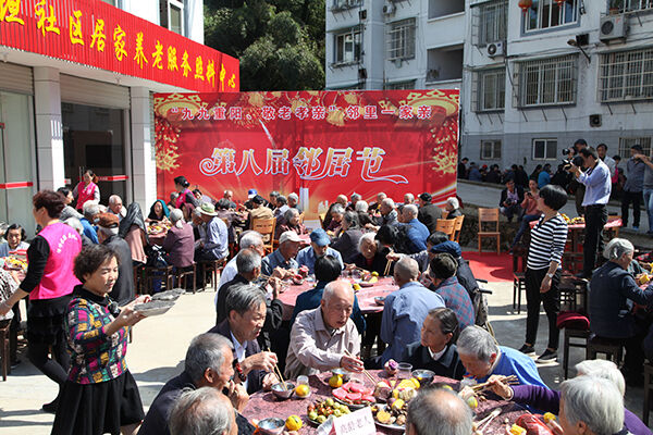10月19日,妙高街道叶坦社区举行“九九重阳、敬老孝亲”邻里一家亲暨第八届邻居节活动,体现敬老爱老传统美德。当天,社区举行了老人健康知识讲座、学习保健操、健康体检活动,并为九对80岁以上健在的夫妻颁发了文明健康老人纪念奖,200多位老人共享了百家宴。