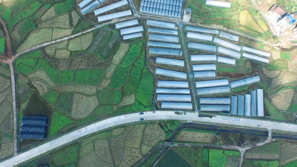 位于高坪乡高坪新村的里高生态蔬菜观光园核心基地占地350亩,种植有小番茄、辣椒、迷你南瓜等十余种果蔬。里高农产品专业合作社的“桃源尖”牌原生态高山蔬菜已通过国家绿色食品认证。图为航拍下的里高生态蔬菜观光园。