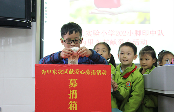 近日,县实验小学2年级2班的学生与家长一起上了一堂特殊的班队课。在课上,小学生们纷纷拿出自己的零花钱,与父母一起为里东灾区捐款,献上自己的一份爱心。当天该班级共募集到善款2453元,将通过县慈善总会转交到灾区人民手中。