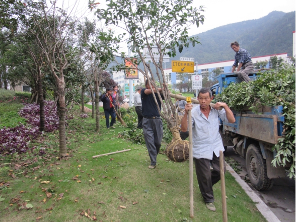 由于今年雨水较多,导致我县高速东出口绿化带上的树木树根处积水严重,从而使得部分苗木因树根腐烂而死亡。为恢复绿地景观,县园林处计划将该处死亡苗木全部更换,现已完成了乔木类树种的死株移除及相应树种的更换。